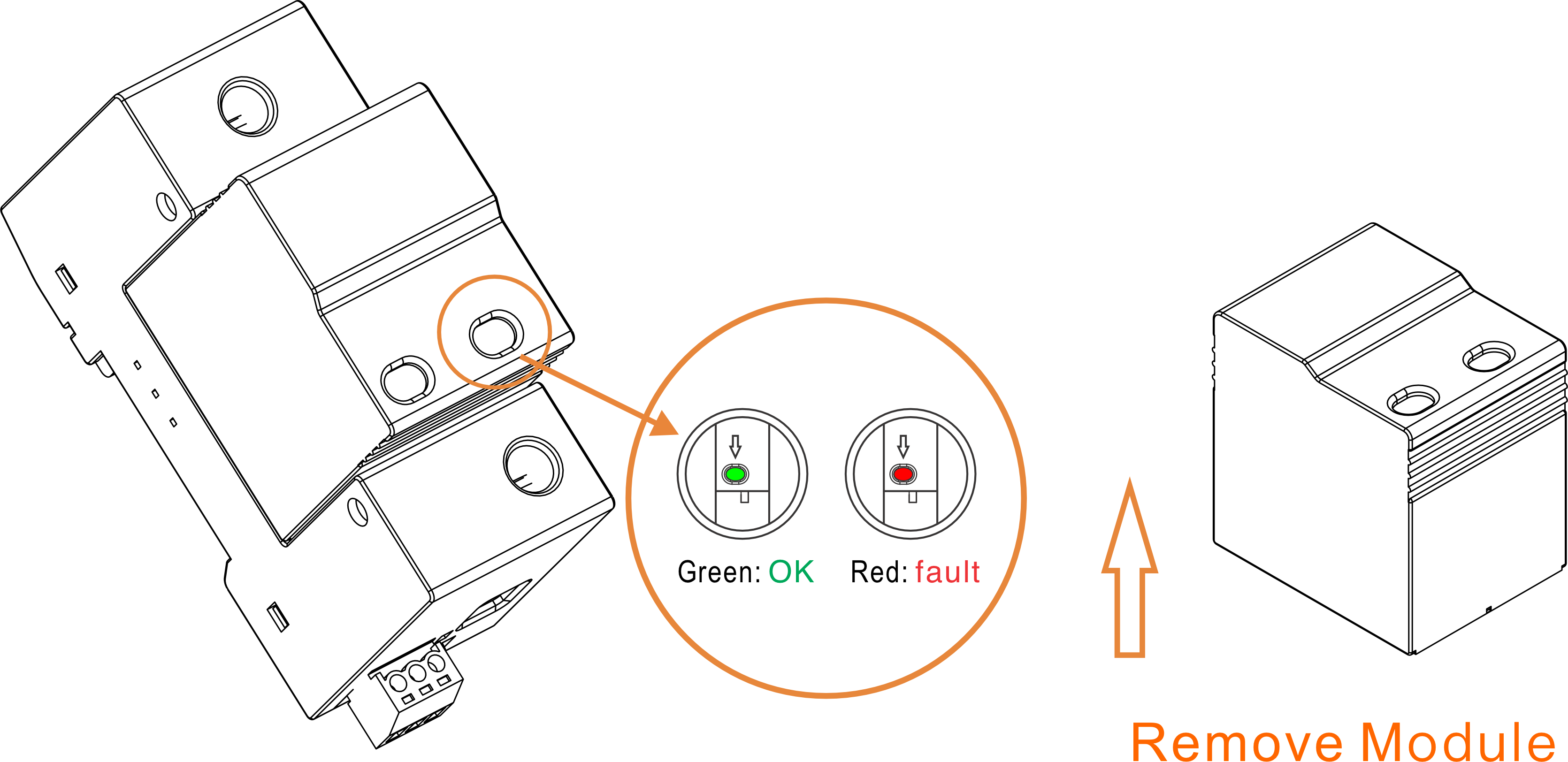 If surge protection fails, the fault indication windows will turn red, thus it can be seen intuitively, and the surge protective device can be replaced in time to avoid damage to the equipment caused by a second surge.